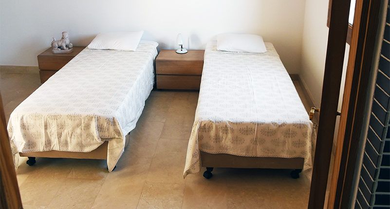 Bedroom four Beautiful light room with French balcony with two beds. As in all rooms the beds can be put together to be a kingsize bed.